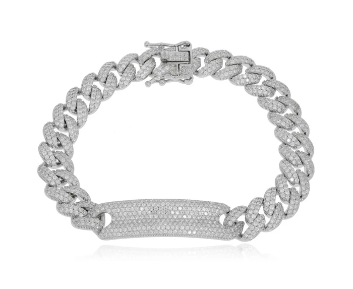 צמיד כסף חוליות עם מפלטה שיבוץ מלא 925
