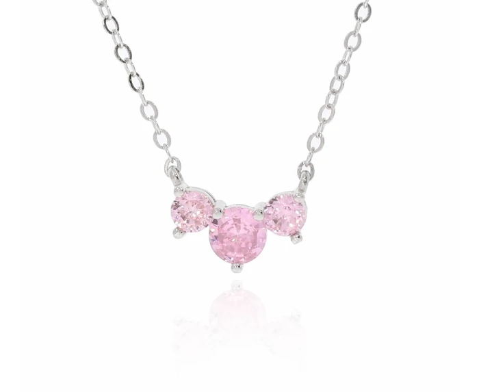 שרשרת 3 אבנים כסף 925 ורוד