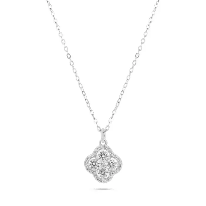 שרשרת כסף 925 עם תליון בעיצוב תלתן עדין משובץ זירקונים.
