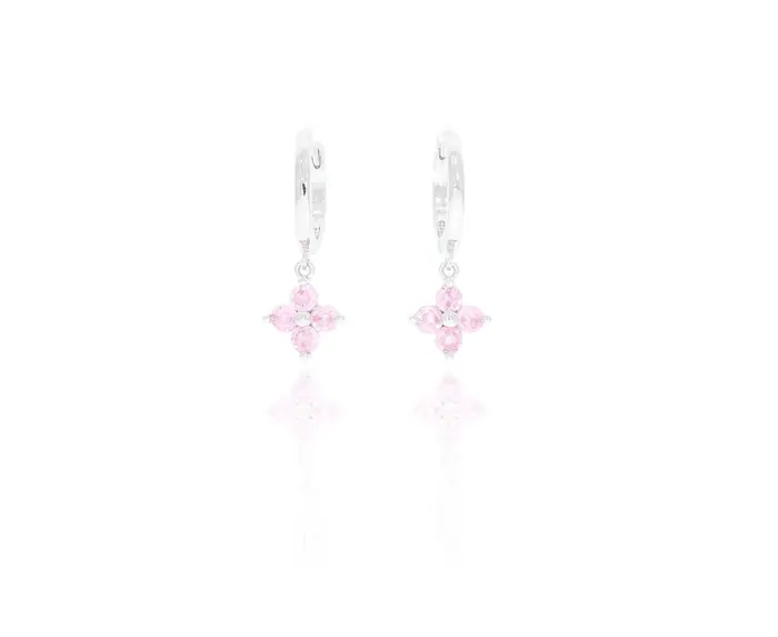 זוג עגילי כסף 925 3 אבנים חישוק ורוד