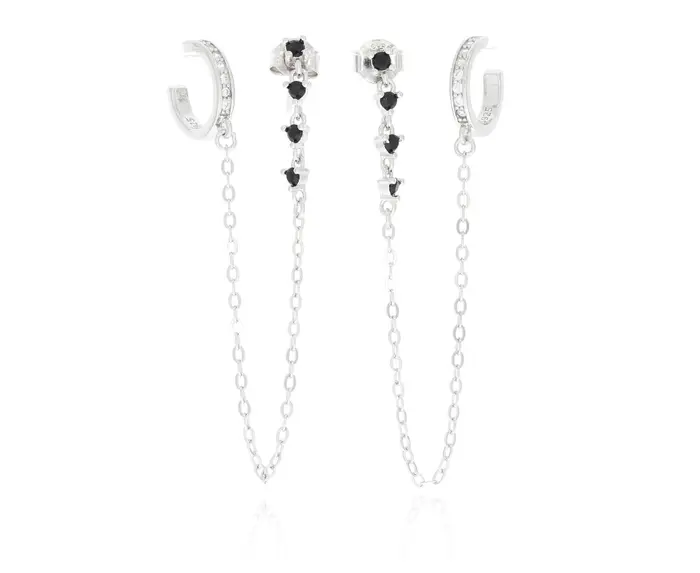 זוג עגילי כסף 925 נקודה והליקס ללא חור שחור