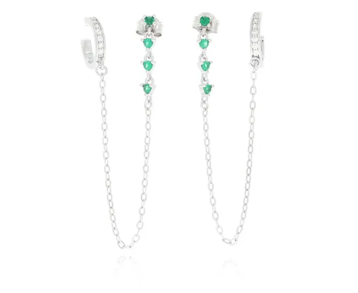 זוג עגילי כסף 925 נקודה והליקס ללא חור ירוק