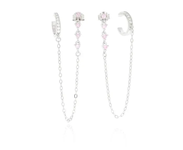 זוג עגילי כסף 925 נקודה והליקס ללא חור ורוד