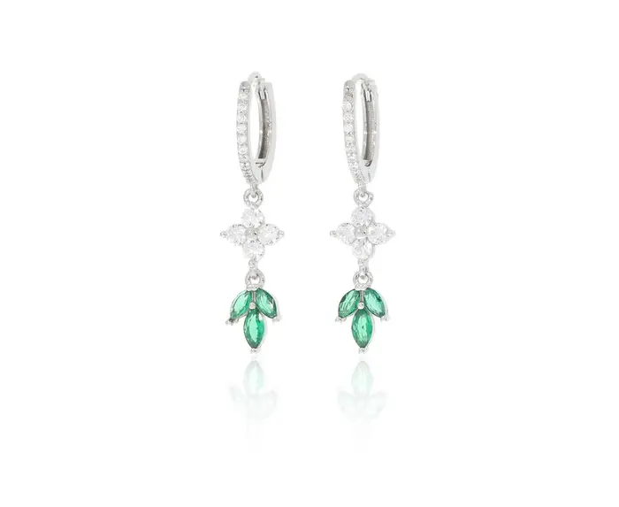 זוג עגילי כסף 925 לוטוס הפוך ירוק