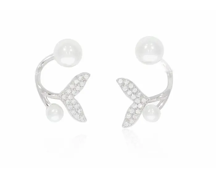 זוג עגילי פנינה כסף 925 דולפין