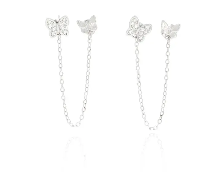 עגיל כסף 2 חורים נופל פרפר.