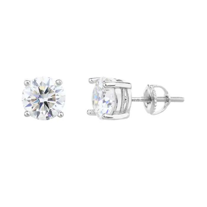 עגיל כסף 925 שיבוץ יהלום מוסונייט 3 קראט