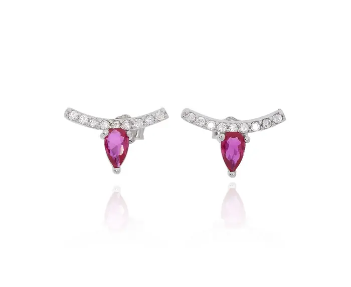 עגילי כסף 925 טיפה ורוד פוקסיה