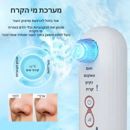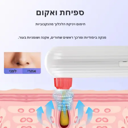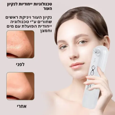ספיחת ואקום : חימום ויניקת הלכלוך מהנקבוביות , מנקה ביסודיות ומרככת קומודונים (ראשים שחורים) , אקנה ושומניות בעור.