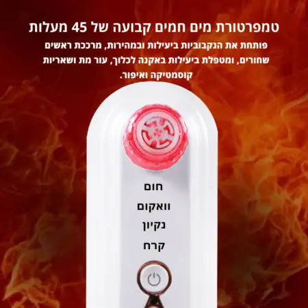 מים חמים : טמפרטורת מים חמים קבועה של 45 מעלות שפותחת את הנקבוביות ביעילות ומהירות